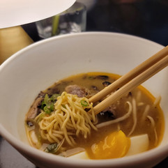 The night kicked off with a unique and refreshing mango prosecco float that featured Mudda Freeze's house-made mango ice cream paired with freshly baked bread from Mudda Freeze's sister company, Bakehouse. Led by Pastry Chef Iavana Moncur, Bakehouse is renowned for its warm, high-quality breads, and this event featured a special garlic butter candle to complement the bread's flavor, adding a touch of indulgence. As the evening continued, guests were served an array of mouthwatering tapas courses that showcased the culinary prowess of Chef Wayne Moncur. The first course, a spiny lobster crostini, was delicate and flavorful, while the ramen brought a comforting warmth. The next course included a hearty six-hour braised short rib paired with a dry rubbed rib served alongside goat cheese polenta. To round out the savory courses, Chef Wayne offered a playful take on a ‘shrimp snack,’ which included hand-cut fries topped with a prosciutto aioli and a jumbo grilled prawn.